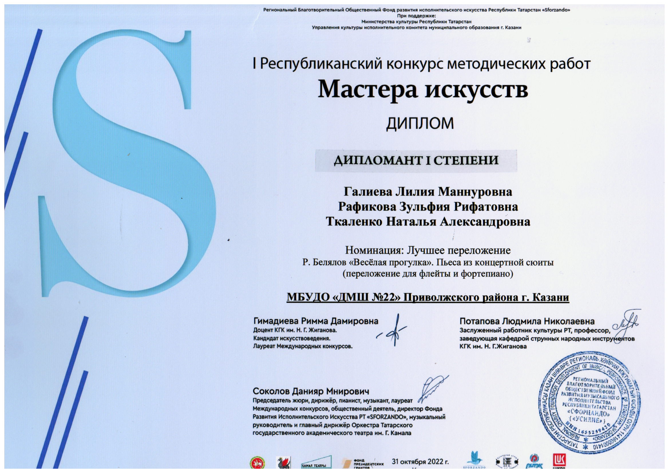 Муниципальное бюджетное учреждение дополнительного образования «Детская музыкальная школа № 22 Приволжского района г.Казани»