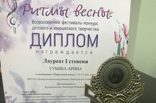 Поздравляем Губину Арину (педагог Элеонора Калашникова), ставшую Лауреатом I степени Всероссийского фестиваля-конкурса детского и юношеского творчества «Ритмы весны»!