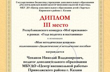 Педагог дополнительного образования Чепанов Николай Владимирович принял участие в Республиканском конкурсе «Моё призвание» в рамках «Года педагога и наставника» и занял 3 место в номинации «Моя методическая копилка».
