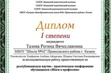 Учащиеся объединения "Я выбираю профессию" (педагог дополнительного образования - Епифанова А.А.) получили 1 место за исследовательскую работу по Эмоциональному интеллекту на Республиканской научно-практической конференции "Шаги в профессию" организованной СОШ №42, совместно с ведущими ВУЗами и колледжами РТ.