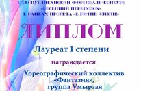 Хореографический коллектив "Фантазия" группа Умырзая - Диплом Лауреат I степени в номинации "Эстрадный танец. Ансамбль"