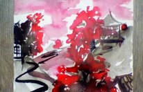 Материал: акварельная бумага,чёрная и красная тушь,большая кисть,простой карандаш.