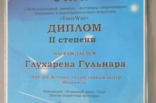 14 апреля прошел I Международный конкурс-фестиваль современного вокального и хореографического искусства "YourWay". В номинации "Эстрадный вокал. Соло" заведующий отделом ДПЦ "Молодость" Гульнара Ринатовна Глухарева стала дипломантом II степени. Поздравляем!