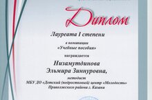 Поздравляем методиста Низамутдинову Э.З. за победу в республиканском конкурсе методических пособий педагогов дополнительного образования художественной направленности.