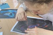 Сегодня в объединении "Город рукоделия" (педагог Сабирова Р. Г.) дети погрузились в космические дали: создали разнообразные композиции на тему "Вселенная". Кто-то поэкспериментировал с образами космонавтов, а некоторые пофантазировали с изображением Млечного пути.