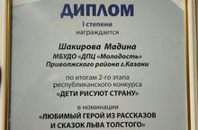 Подведены итоги 2-го Республиканского конкурса "Дети рисуют страну". В номинации "Любимый герой из рассказов и сказок Льва Толстого" Шакирова Мадина (ПДО Валиева Н.Н.) стала дипломатом I степени. Поздравляем!
