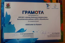Грамота в номинации "Welcome to Kazan" 22.01.2016