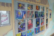 12.04.15 В объединение «ИЗО» прошел конкурс рисунков посвященный «Дню космонавтики», лучшие работы выставлены на школьном стенде