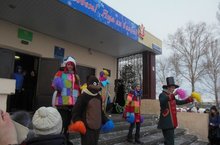 26.12.14. в 13.00. прошло открытие новогодней ёлки в посёлке Мирный. Ребята были приглашены в новогодний цирк. Вместе со Снеговиком и весёлым Клоуном посмотрели выступление Дрессировщика с Медведем и Львом, фантастического Мага с ассистенткой и Драконом, послушали весёлый шумовой оркестр. Для зрителей выступили ребята из хореографического ансамбля «Фантазия» и девочки из объединения «Вокал». Даже мороз не смог отвлечь детей от увлекательного представления! Ну а Дед Мороз и Снегурочка были в восторге от такого необычного представления и наградили подарками детей, который рассказали им новогодние стихи. Охват 350 человек. Ответственная Змысля Е.А. Никулина А.П.