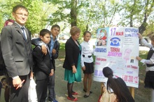 16.05.14 воспитанники объединения "ИЗО" изготовили баннер "Детский телефон доверия", после чего прошлись с ним по улицам пос. Мирный и собирали подписи.