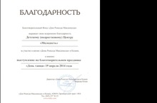 Благодарность за выступление на благотворительном празднике 23.04.2014