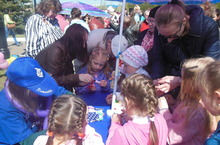 9 мая педагоги ДПЦ "Молодость" организовали детскую площадку в парке Победы. Проводились мастер-классы кукла-оберег и игрушка цыпленок.