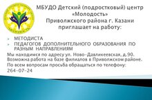 Муниципальное бюджетное учреждение дополнительного образования Детский (подростковый) центр «Молодость» Приволжского района г. Казани