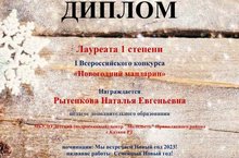По итогам I Всероссийского конкурса "Новогодний мандарин" педагоги дополнительного образования ДПЦ "Молодость" Рытенкова Н.Е., Гильманова А.Ф., Андряшина Е.А., Елисеева А.Н. стали Лауреатами I степени. Поздравляем и желаем дальнейших успехов!