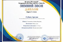 По итогам Международного фестиваля искусства и творчества "Зимний звон" в номинации "Вокал, соло" воспитанник ДПЦ "Молодость" Субаев Арслан объединения "Вокальный ансамбль "ДоРеMix" (педагог - Гильманова А.Ф.) стал Лауреатом II степени. Поздравляем и желаем дальнейших творческих успехов!