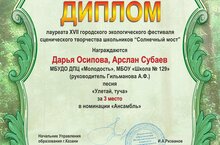 По итогам XVII городского экологического фестиваля сценического творчества школьников "Солнечный мост" в номинации "ансамбль" и "вокал-соло" воспитанники ДПЦ "Молодость" Субаев Арслан, Осипова Дарья, Закирова Азалия, Шаронова Дарина объединения "Вокальный ансамбль "ДоРеMix" (педагог - Гильманова А.Ф.) заняли 3 место. Поздравляем и желаем дальнейших творческих успехов!