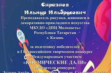По итогам Всероссийского творческого конкурса "Космические дали" награждены 10 учащихся объединения "Юные дарования" (педагог - Сиразиев И.И.). Поздравляем победителей и желаем дальнейших успехов.