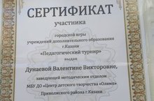 30 марта на базе ЦДТ "Азино" Советского района города Казани была проведена городская игра учреждений дополнительного образования "Педагогический турнир". В игре приняла участие заведующая методическим отделом ЦДТ "Олимп" - Дунаева Валентина Викторовна. В течение трёх часов коллеги со всего города обсуждали проблемы, стоящие перед учреждениями дополнительного образования и делились опытом работы своих центров.