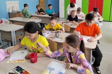 Педагог Нашего Центра Шарипова И.И. провела мастер-класс для детей пришкольных лагерей СОШ №114 "Восковые мелки + акварель "Лето. Бабочки".