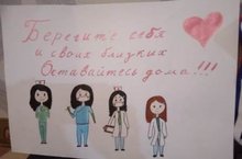 Творчество детей по поддержке врачей и просьбой оставаться дома и не становиться разносчиками вируса.