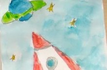 Учащиеся объединений декоративно-прикладного творчества Гладкова Д.И. \,Шарипова И.И. приготовили рисунки ко Дню космонавтики.