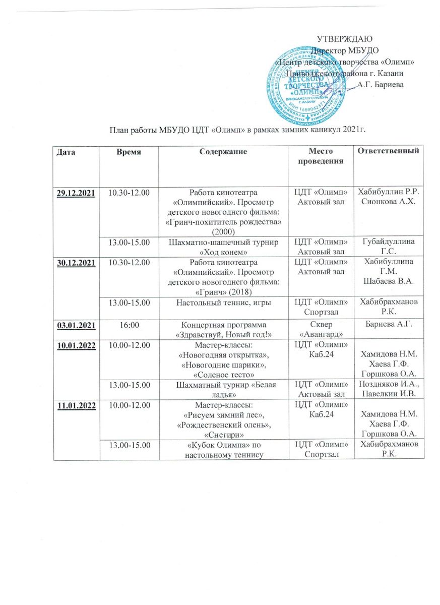 Планы работы ЦДТ "Олимп" на 2021 - 2022 учебный год