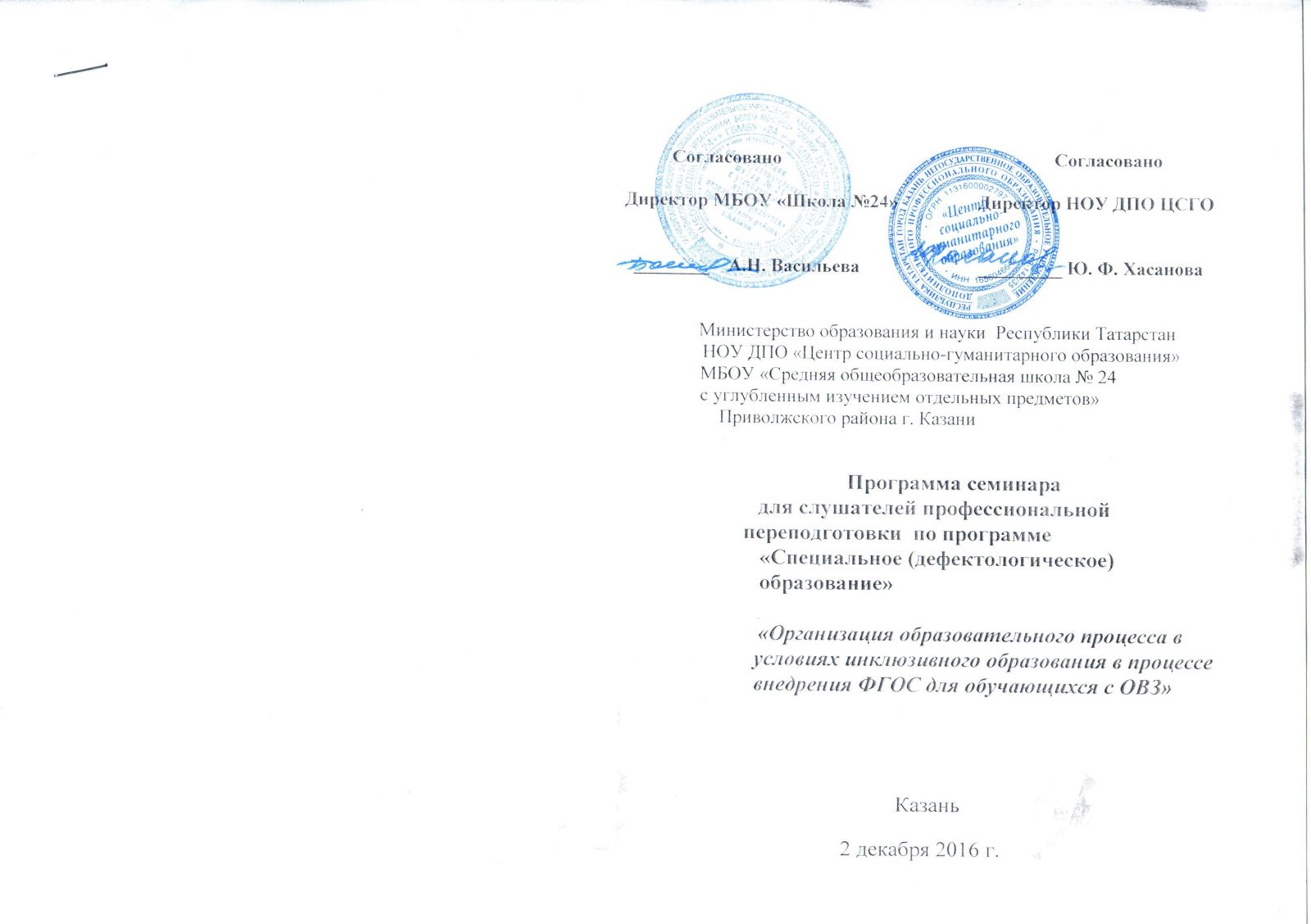 Программа семинара для слушателей профессиональной переподготовки по программе "Специальное (дефектологическое) образование"