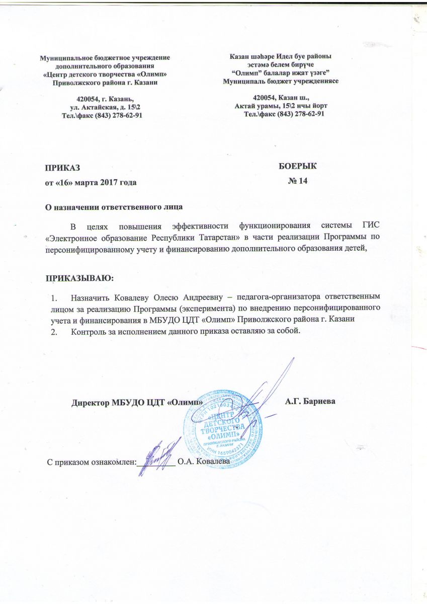 Муниципальное бюджетное учреждение дополнительного образования «Центр детского творчества «Олимп» Приволжского района» г. Казани