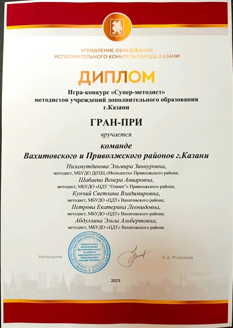 Муниципальное бюджетное учреждение дополнительного образования «Центр детского творчества «Олимп» Приволжского района» г. Казани