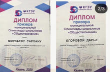 У нас призеры муниципальной Олимпиады школьников «Обществознания» 06.03.2020