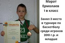 Ермолаев Марат -ученик 1 «В» класса занял 3 место в турнире по баскетболу среди игроков 2010 г.р. и младше, проходил турнир в Баскет-холле!