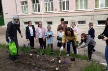 Сегодня в рамках санитарно-экологического двухмесячника в школе была организована акция "Посади цветок своими руками". Учащиеся начальной школы вместе с родителями посадили на школьном участке петунии.