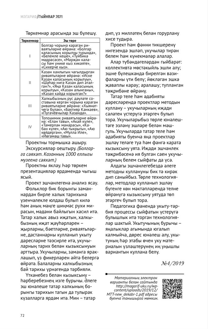 Публикация в журнале «Мәгариф»! №1/ 2021