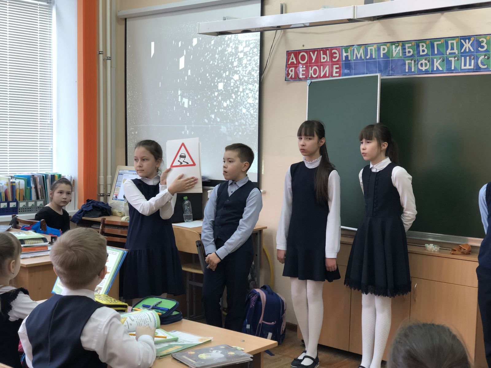 И уже становится хорошей традицией выступление отряда в классах, которые уходят на каникулы. Нашим первоклассникам ЮИДовци напомнили о правилах поведения на дороге, на улице и в общественных местах во время каникул.