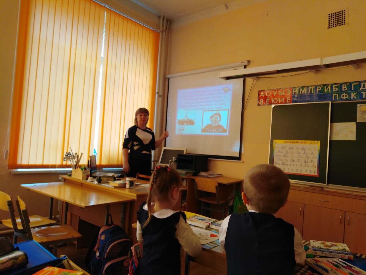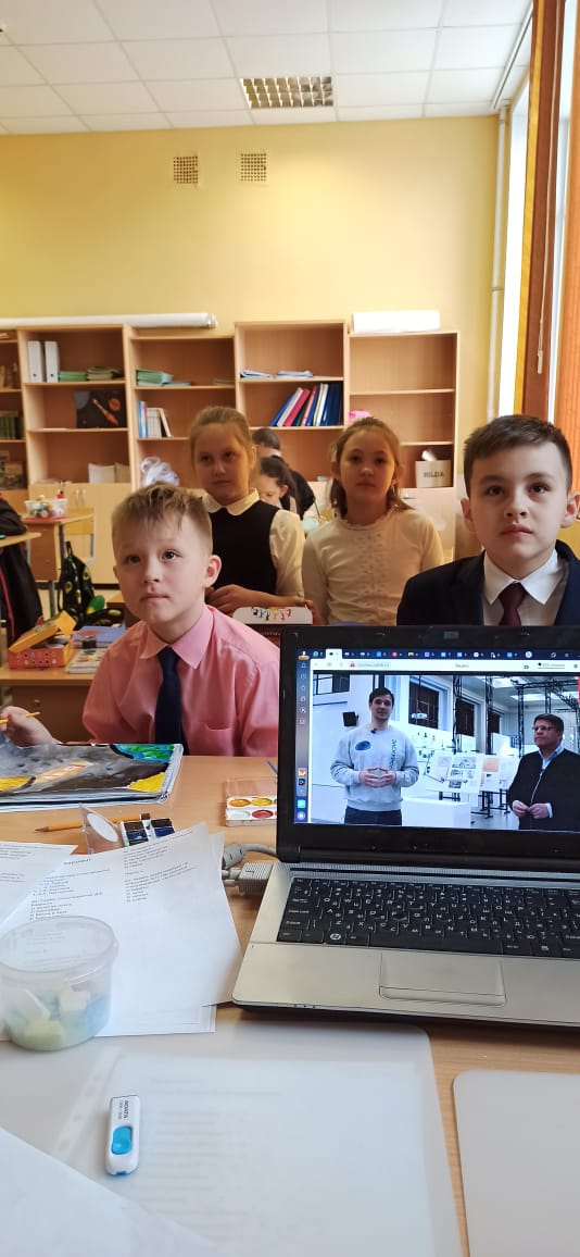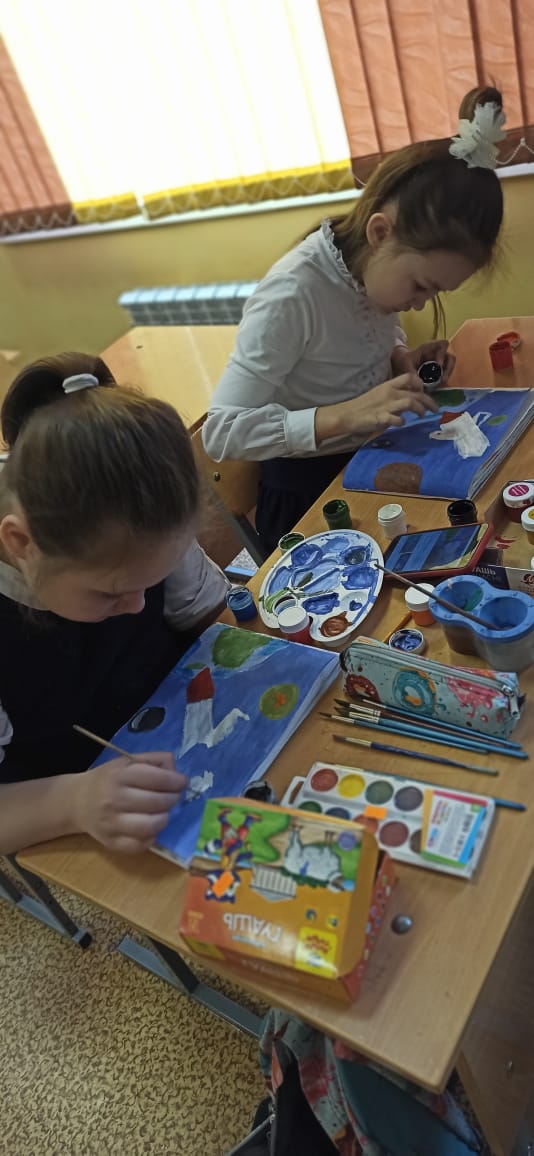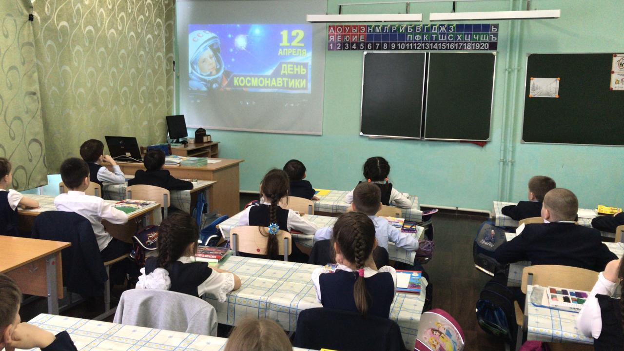 На уроке ребята подробнее узнали об истории освоения космоса в советское время, как развивалась отечественная космонавтика, как появилось слово «космонавт» и многое другое.