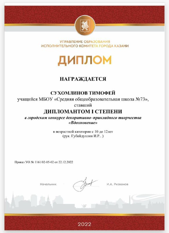 Поздравляем Тимофея и учителя технологии Искандера Рашидовича с прекрасным результатом!