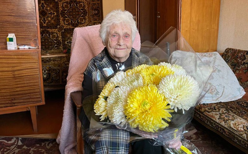 Поздравление с 95-летним юбилеем жительницу нашего микрорайона, труженика тыла Мазаеву Марию Максимовну