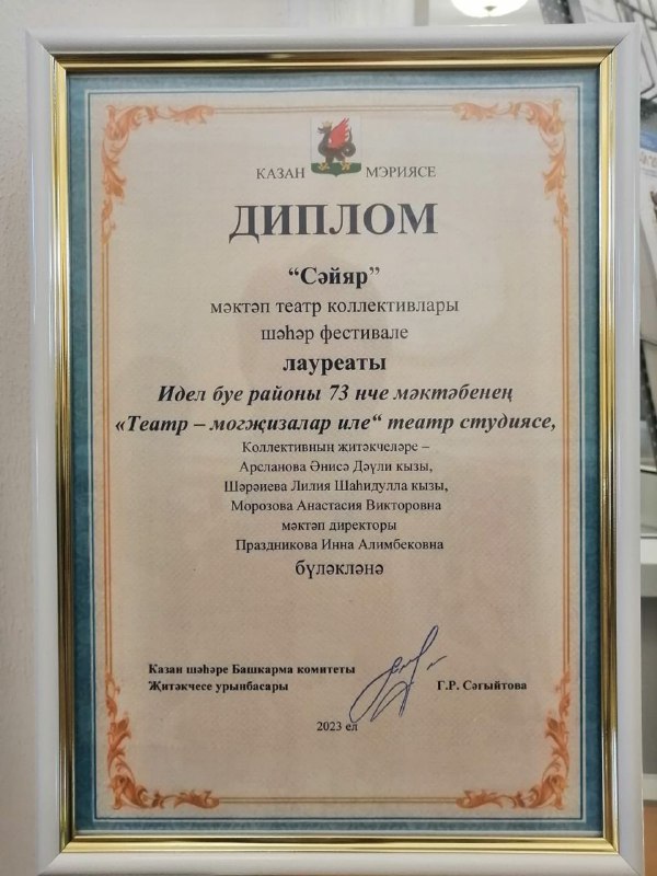 Муниципальное бюджетное общеобразовательное учреждение «Средняя общеобразовательная школа №73» Приволжского района г.Казани