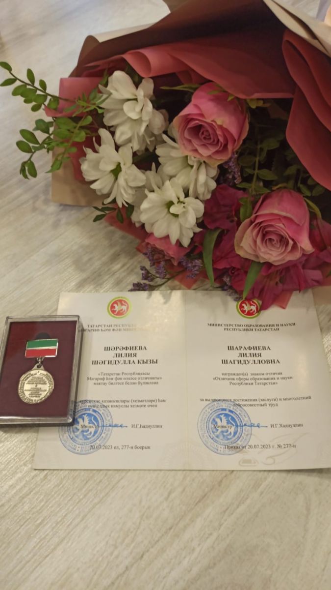 Знак отличия «Отличник сферы образования и науки Республики Татарстан» за выдающиеся достижения (заслуги) и многолетний добросовестный труд