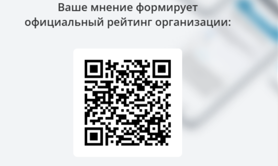 Опубликовано: 06.03.2025Ваше мнение формирует официальный рейтинг организации. Пройдите опрос и оцените работу организации по 5-ти бальной шкале. Анкета доступна по QR-коду, а так же по прямой ссылке https://bus.gov.ru/qrcode/rate/261493