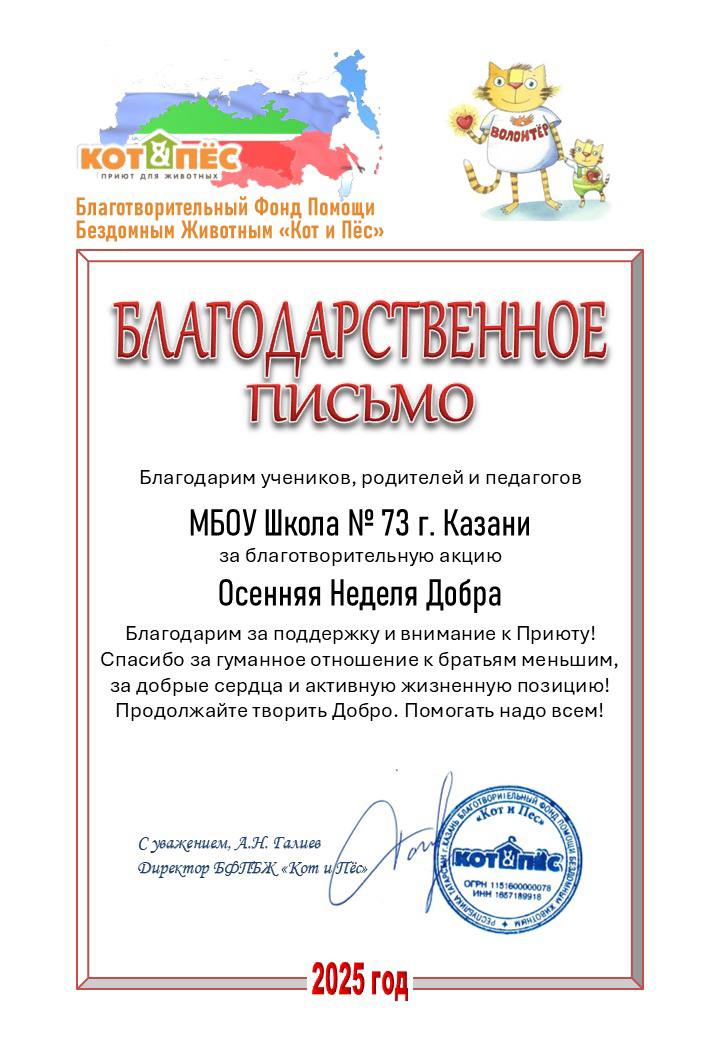 Опубликовано: 25.09.2025К нам в гости пришел основатель приюта «Кот и пес», который провел замечательный урок о том, как мы можем помочь бездомным собакам и кошкам. Он поделился трогательными историями и показал видео всех наших пушистых друзей, которые ждут заботы и любви.