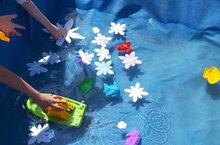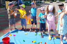 Воспитанники старших и подготовительных групп с воспитателем Натальей Борисовной создали в песочнице искусственный водоем, запустили в него кувшинки и понаблюдали за раскрытием лепестков.