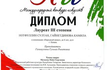 И снова конкурс! Так же дуэт воспитанников Нотфуллин Султан и Гайнетдинова Камиля с руководителем Галимуллиной Гульназ Ринатовной 9 декабря 2018 года приняли участие в международном конкурсе-фестивале речевого и вокального искусства "Илhамият" и заслуженно получили диплом 2 степени. УРА!!! Мы гордимся нашими успехами!!!