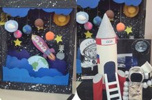 Дети совместно с родителями приняли участие в выставке "Загадочная вселенная", на которую подготовили различные поделки. Выставка удалась на славу. Совместные работы детей и родителей получились яркими и оригинальными. Ракеты, космические корабли, неопознанные летающие объекты, планеты солнечной системы, космонавты-каждая работа уникальна.