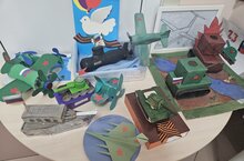 В детском саду организована выставка детского творчества , посвященная празднику 23 февраля - «Дню защитника Отечества».На выставке представлены рисунки, поделки, открытки совместно с родителями, а также виды военного транспорта