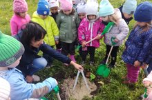Воспитанники нашего детского сада приняли участие в проекте "Растем вместе". Этот проект разработан Управлением образования в целях вовлечения детей в процесс сохранения и приумножения зеленых насаждений в городе. Вместе со своими воспитателями дети высадили саженцы сосен на территории детского сада и теперь будут ухаживать за ними, наблюдать и следить за ростом деревьев.