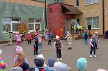Сегодня на территории детского сада был организован осенний праздник, на котором дети встретились со сказочными героями Бабой Ягой, Королевой Осенью и др.