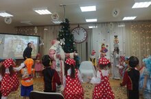 В детском саду проходят новогодние утренники.Дети с нетерпением ждут прихода любимых персонажей - Деда Мороза, Снегурочки и сказочных героев. Для них дети приготовили много новых песен, хороводов и танцев. Поздравляем всех с наступающими праздниками!