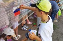Воспитатели подготовили праздник на свежем воздухе! Ребята читали стихи, отгадывали загадки о нашей великой стране, танцевали флешмоб «Мы дети России!», участвовали в эстафетах.
