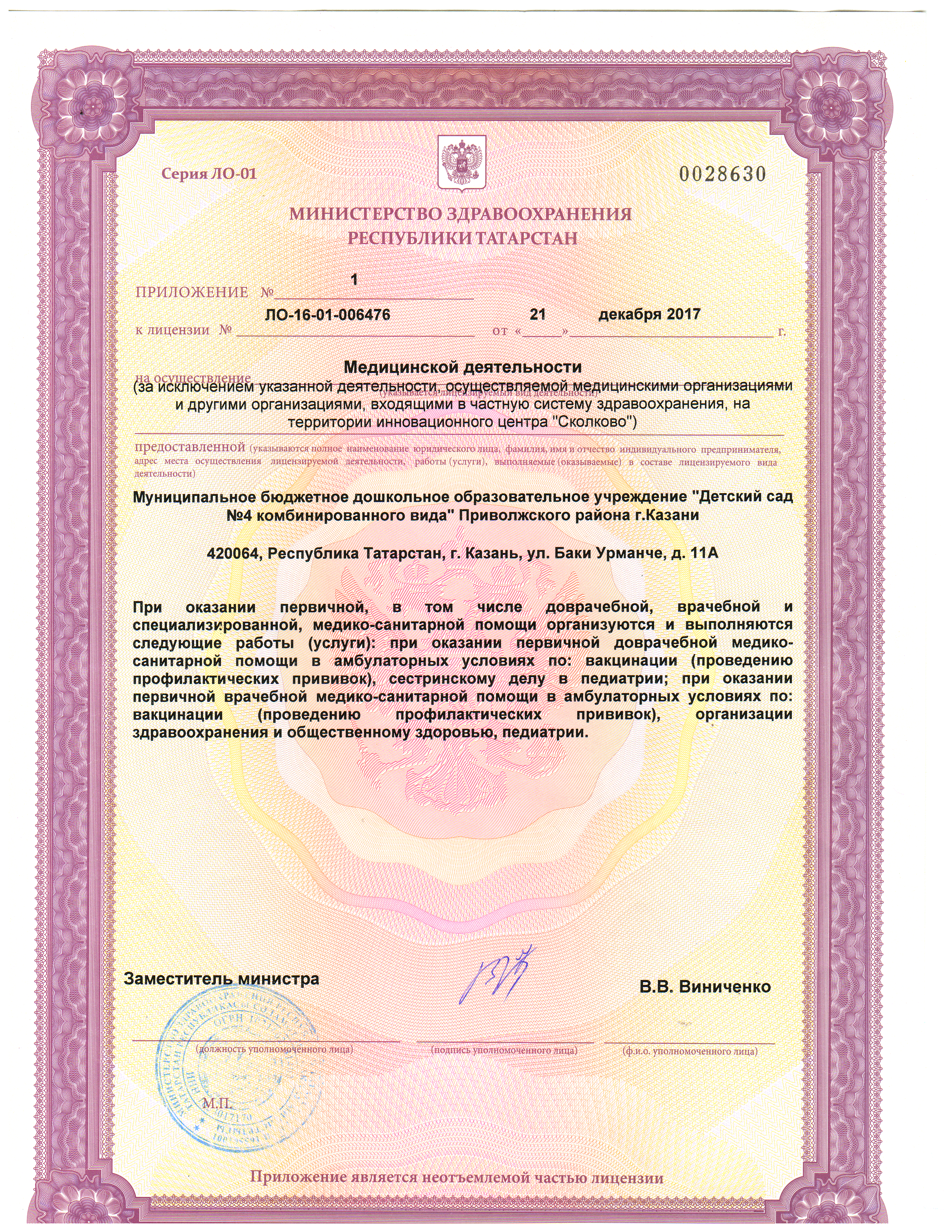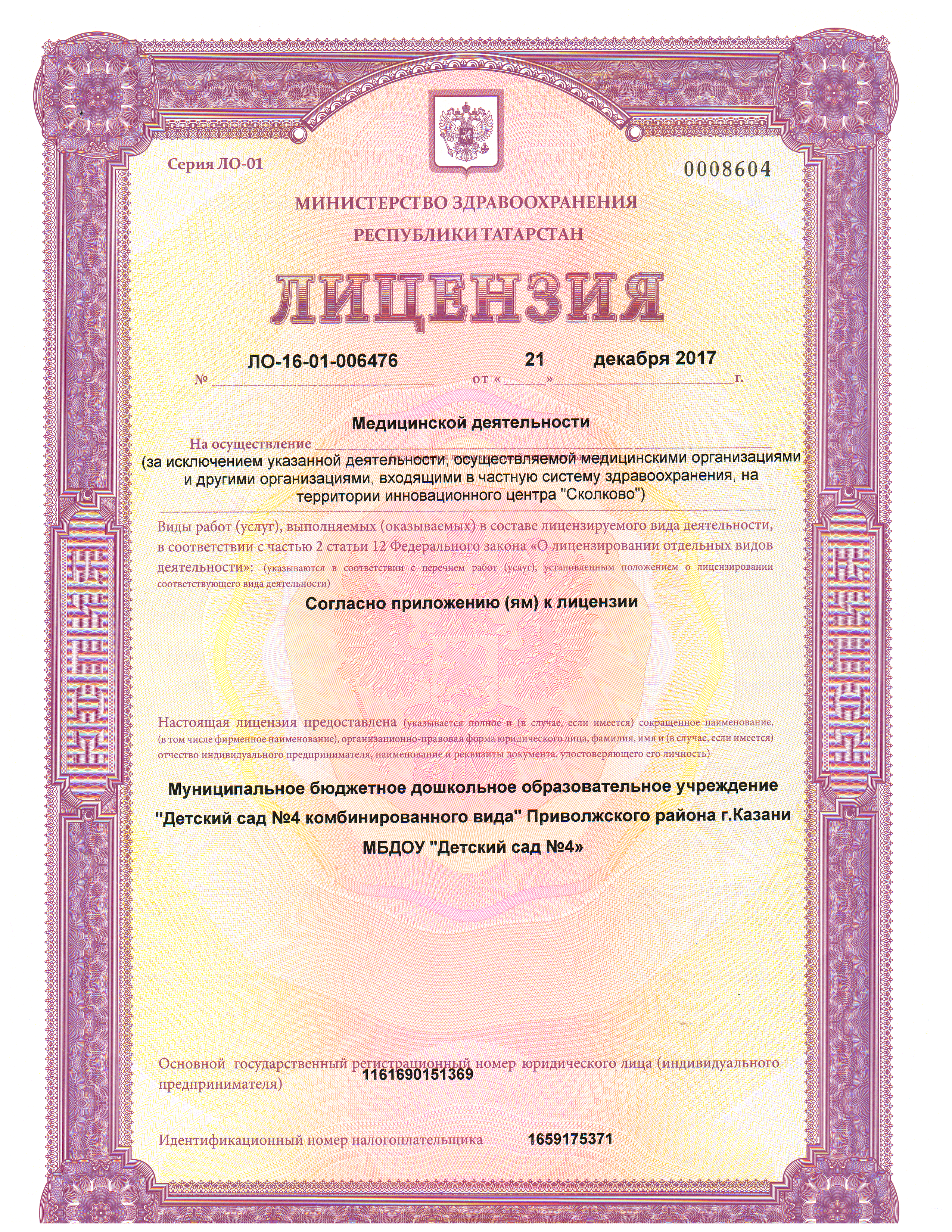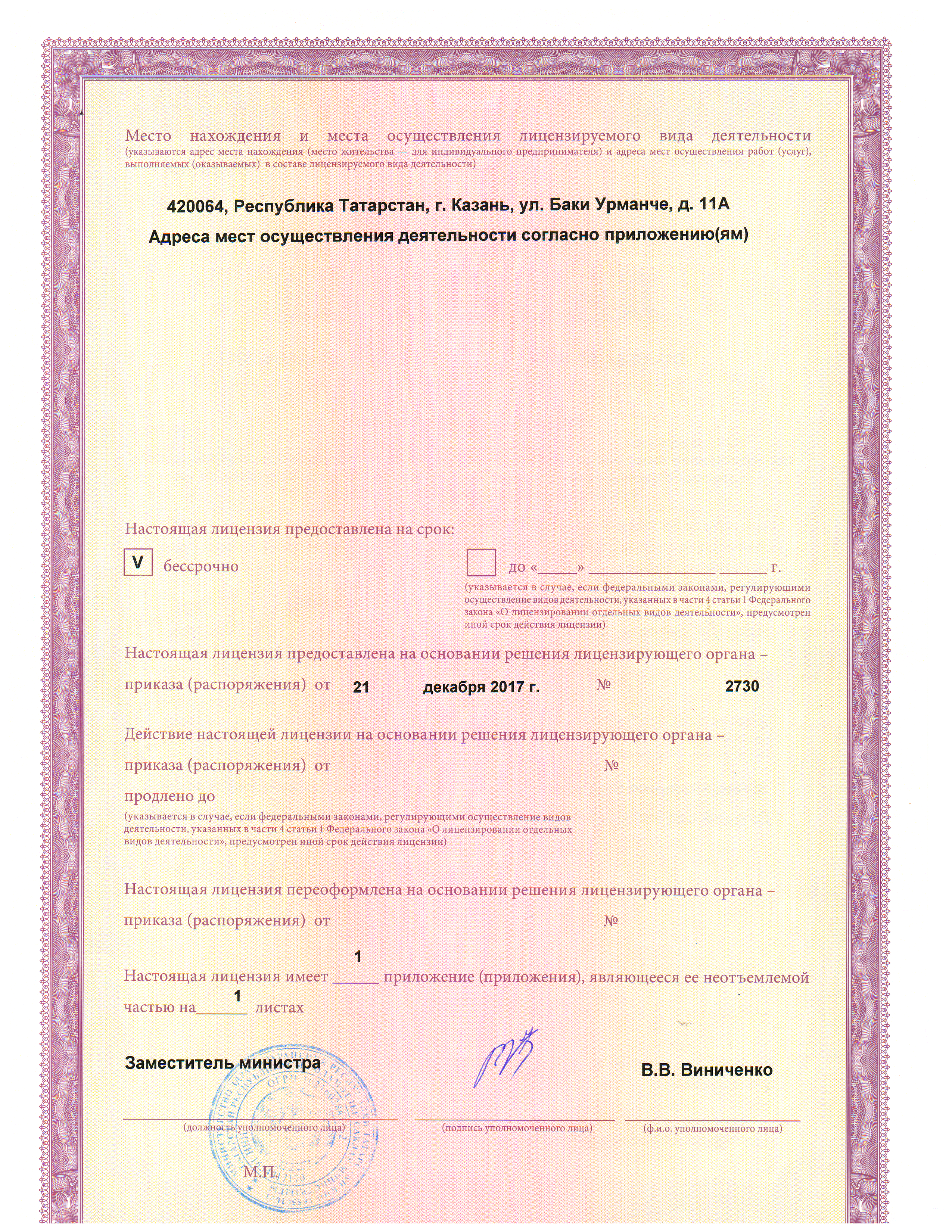 Лицензия на осуществление медицинской деятельности по 1-му зданию на Баки Урманче